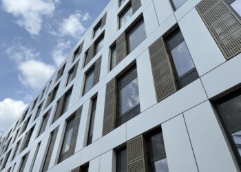 Elegant aluminium facade emphasizes modern clinic architecture The construction of the new dermatology and…